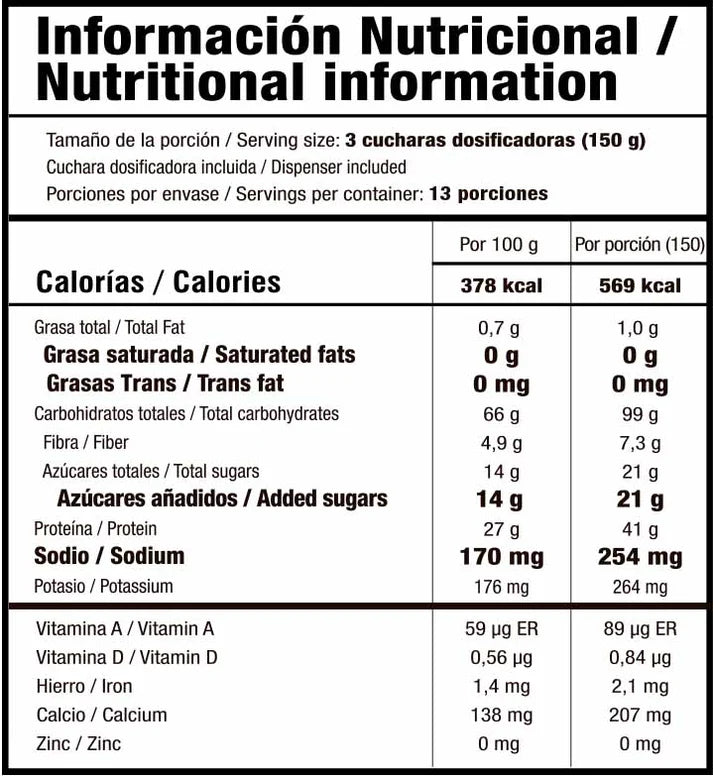 Aporte Proteico Avanzado: Con 41g de proteína por servicio, es la materia prima ideal para consumir en tu ventana post-entrenamiento y acompañar tu proceso de descanso.
